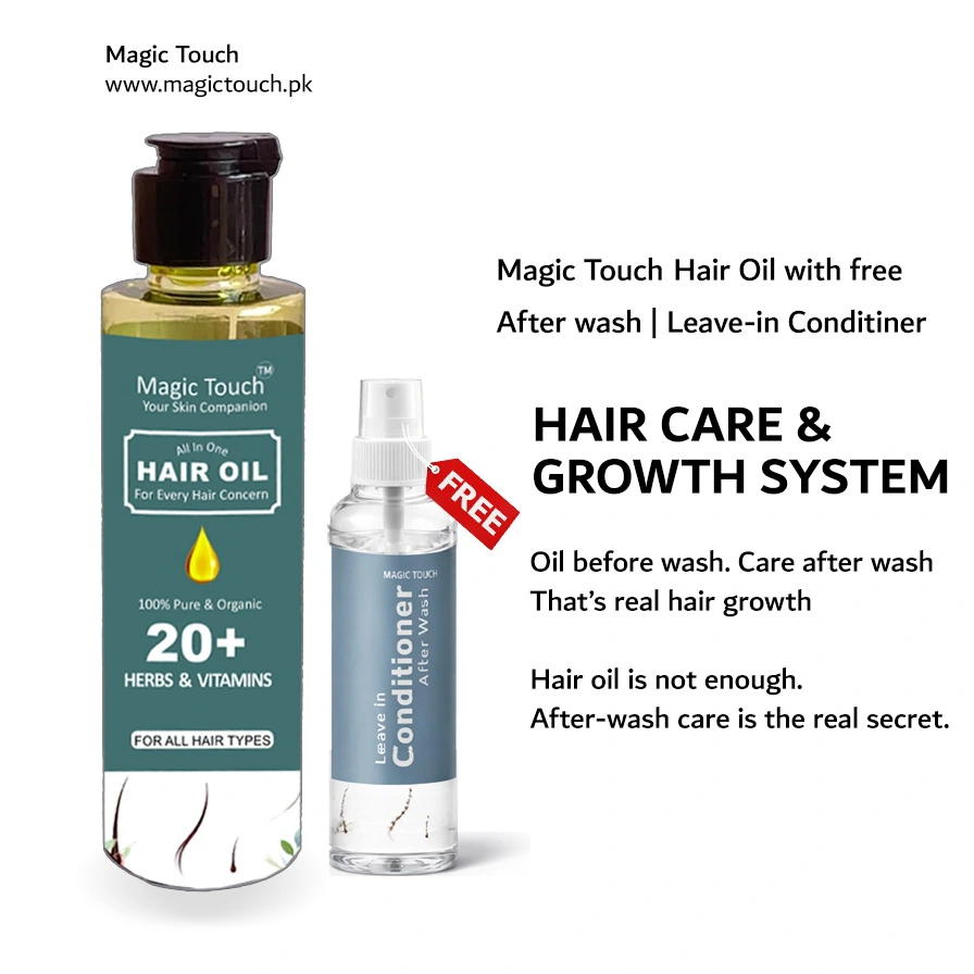 Transform your hair care routine with Magic Touch All in One Hair Oil, enriched with 20+ natural herbs and essential vitamins. This powerful formula nourishes your scalp, strengthens hair from root to tip, and promotes healthy, shiny, and frizz-free hair. It’s suitable for all hair types and works to reduce hair fall, split ends, and dryness. For added convenience, each purchase comes with a free leave-in conditioner spray, giving your hair extra softness and manageability after every wash.